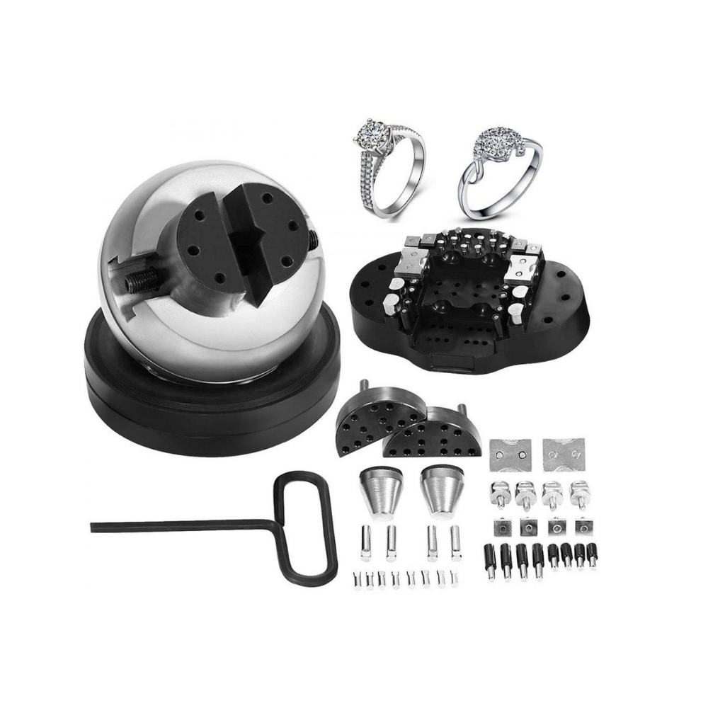 Kugla za fasovanje je esencijalni alat za svaku profesionalnu juvelirsku radionicu. Izrađena od visokokvalitetnog čelika sa gumenom bazom za stabilnost, ova kugla omogućava precizno fiksiranje nakita tokom fasovanja, graviranja i drugih delikatnih radova. Prečnik kugle od 80mm pruža dovoljnu radnu površinu, dok rotacija od punih 360 stepeni omogućava pristup svakom uglu bez prekidanja rada. Težina od 3.5kg osigurava stabilnost tokom najzahtevnijih operacija. Set dolazi sa kompletnim osnovnim stega sistemom, višestrukim dodatnim nastavcima i šablonima koji omogućavaju rad na različitim tipovima nakita – od prstenja preko minđuša do kompleksnijih komada. Ključ za zaključavanje omogućava sigurnu fiksaciju radnog komada. Stabilna konstrukcija i precizni mehanizam čine ovu kuglu pogodnom za najdelikatnije ručne radove gde je potrebna maksimalna kontrola i preciznost.